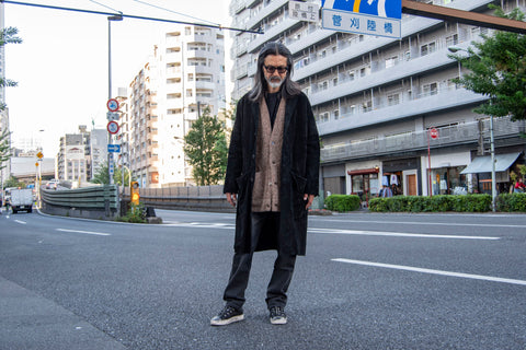 RUSTオイルカーフスエード RUST ロングオーバーコート - BLACK