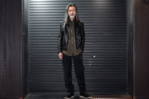 フルタンニン ピット鞣し シュリンク ホースハイド LIST ダブルライダースジャケット - BLACK