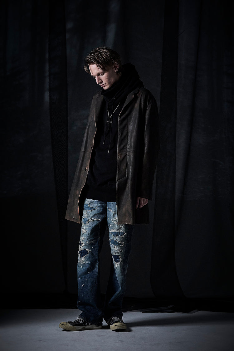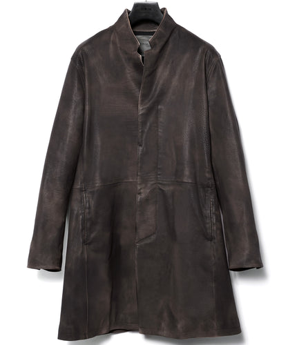 白鞣し × ベジタブルタンニン鞣し カーフ スキン Burning dyed - 製品燃焼染め SIXX ミドルコート - IRON RUST