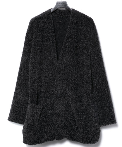 アルパカ ナイロン ドビー シャギー加工 ミドルカーディガン - BLACK