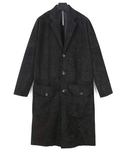 オイルカーフスエード RUST ロングオーバーコート - BLACK