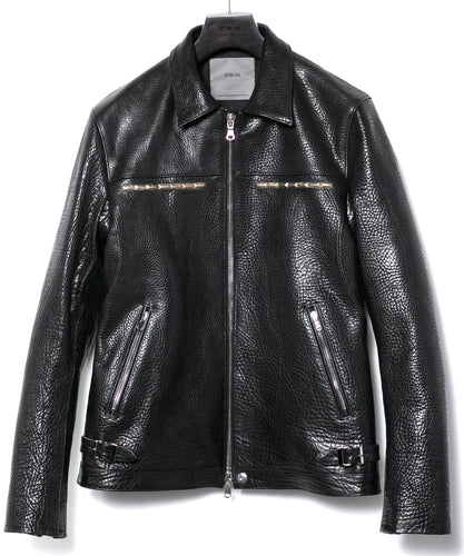 フルタンニン ピット鞣し シュリンク ステアハイド M.VINCENTS シングルライダースジャケット - BLACK