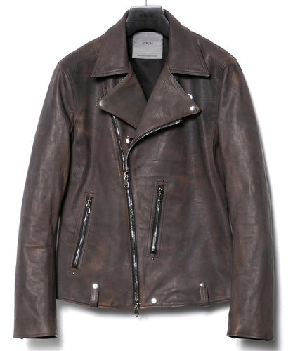 白鞣し × ベジタブルタンニン鞣し カーフ スキン Burning dyed - 製品燃焼染め HI-FLYER ダブルライダースジャケット - IRON RUST