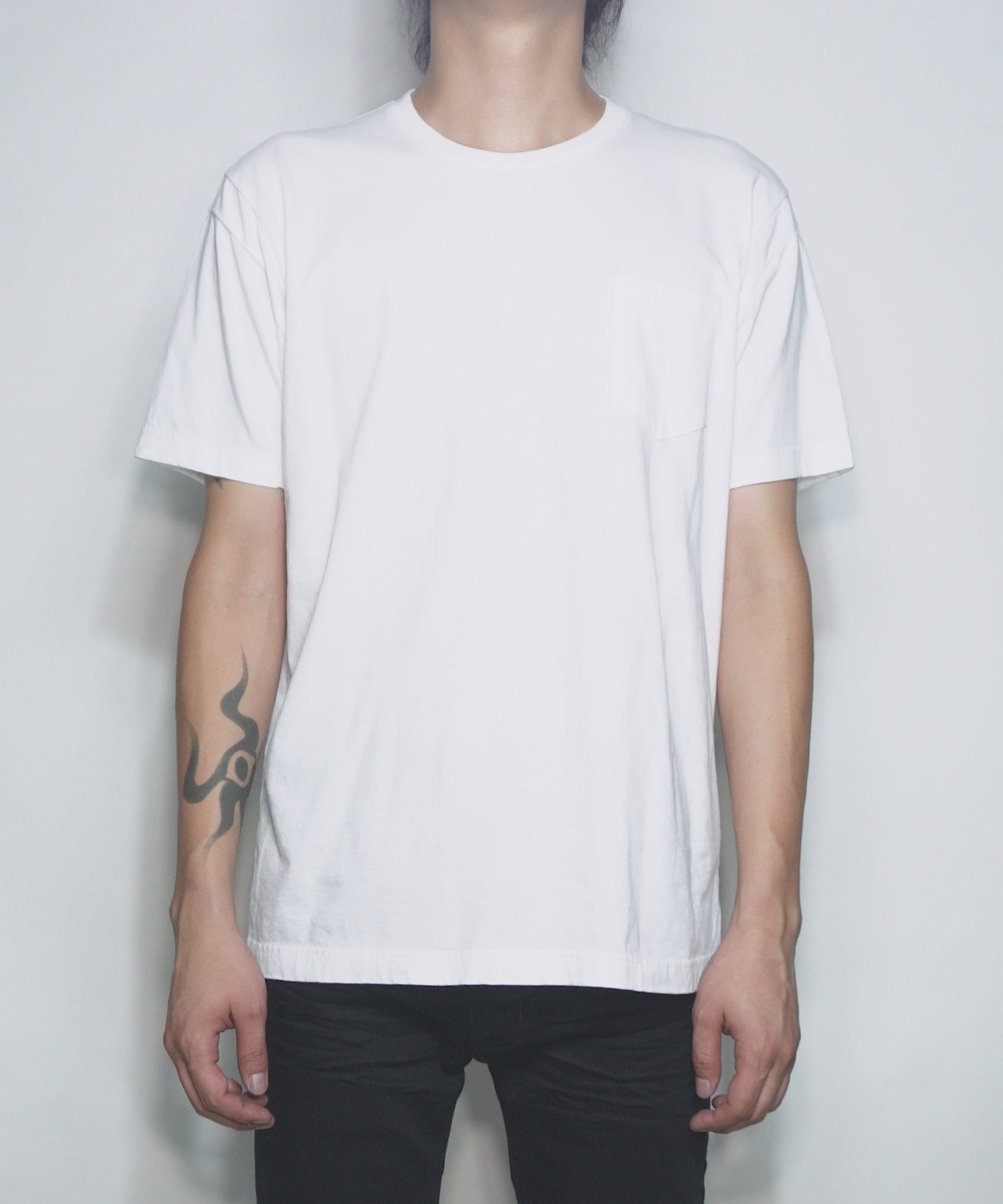 30/-ナチュラルソフト天竺 胸ポケット クルーネック Tシャツ(ジャストフィット) - WHITE