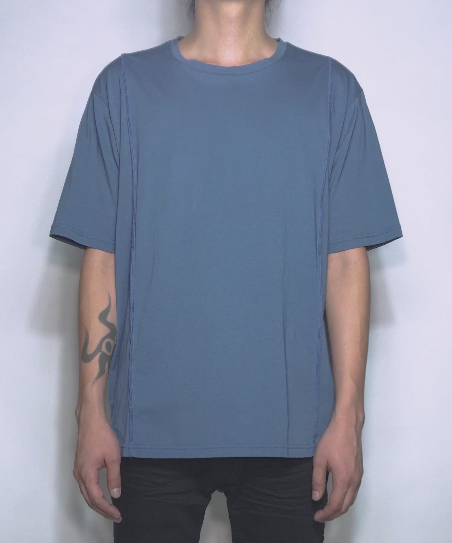 リメイクTee の様に、裁ち切りで縦に接いだ様なデザインを入れ、ストリート感をプラスした シリーズです。2026 S/S では天幅を1cm小さく調整し、よりスマートな印象に仕上げました。