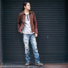 2022.11.19Coordinates with Burning dyed single riders jacket "FEVER"!