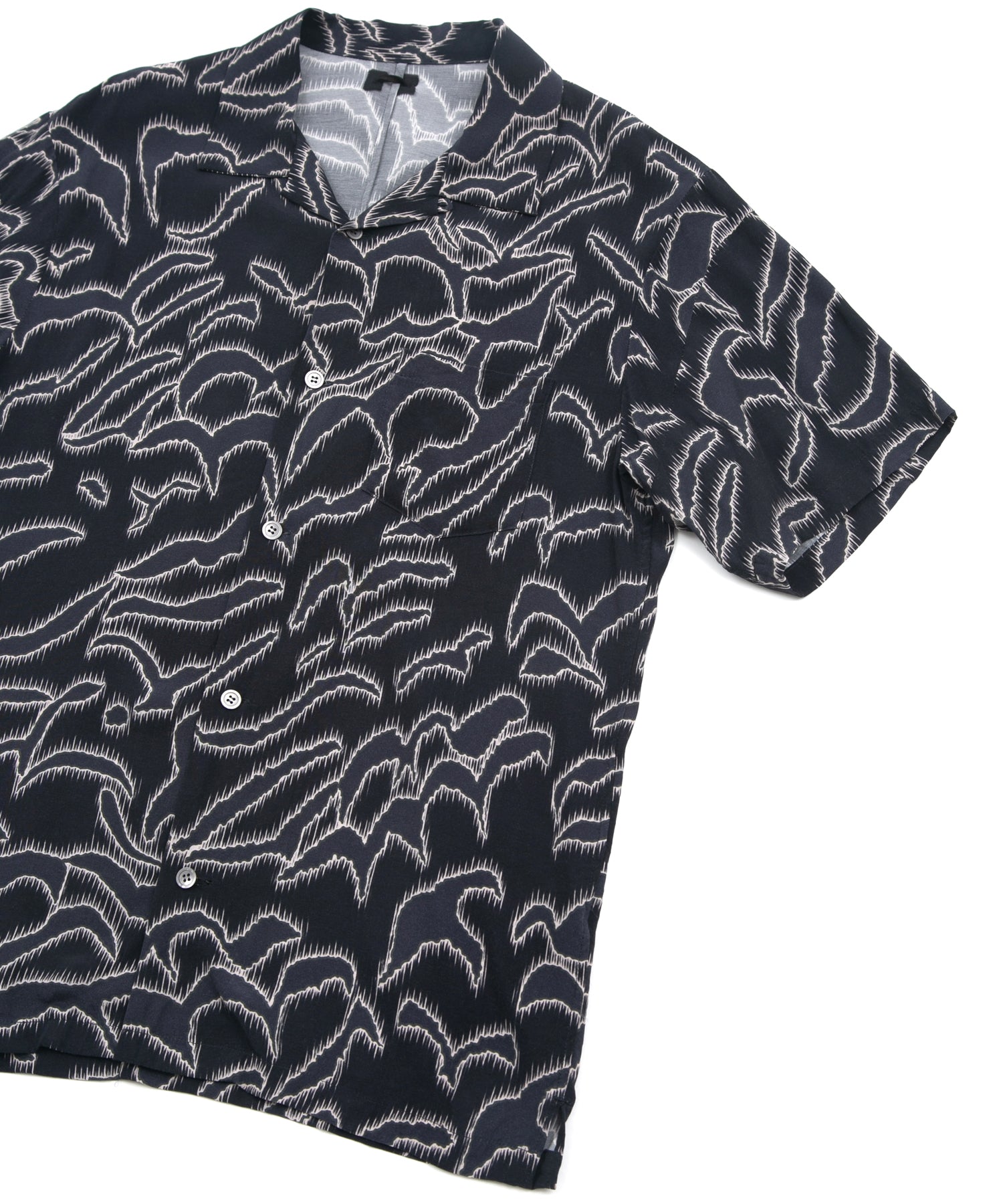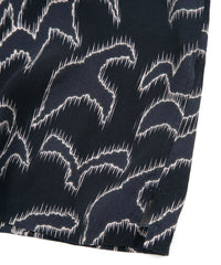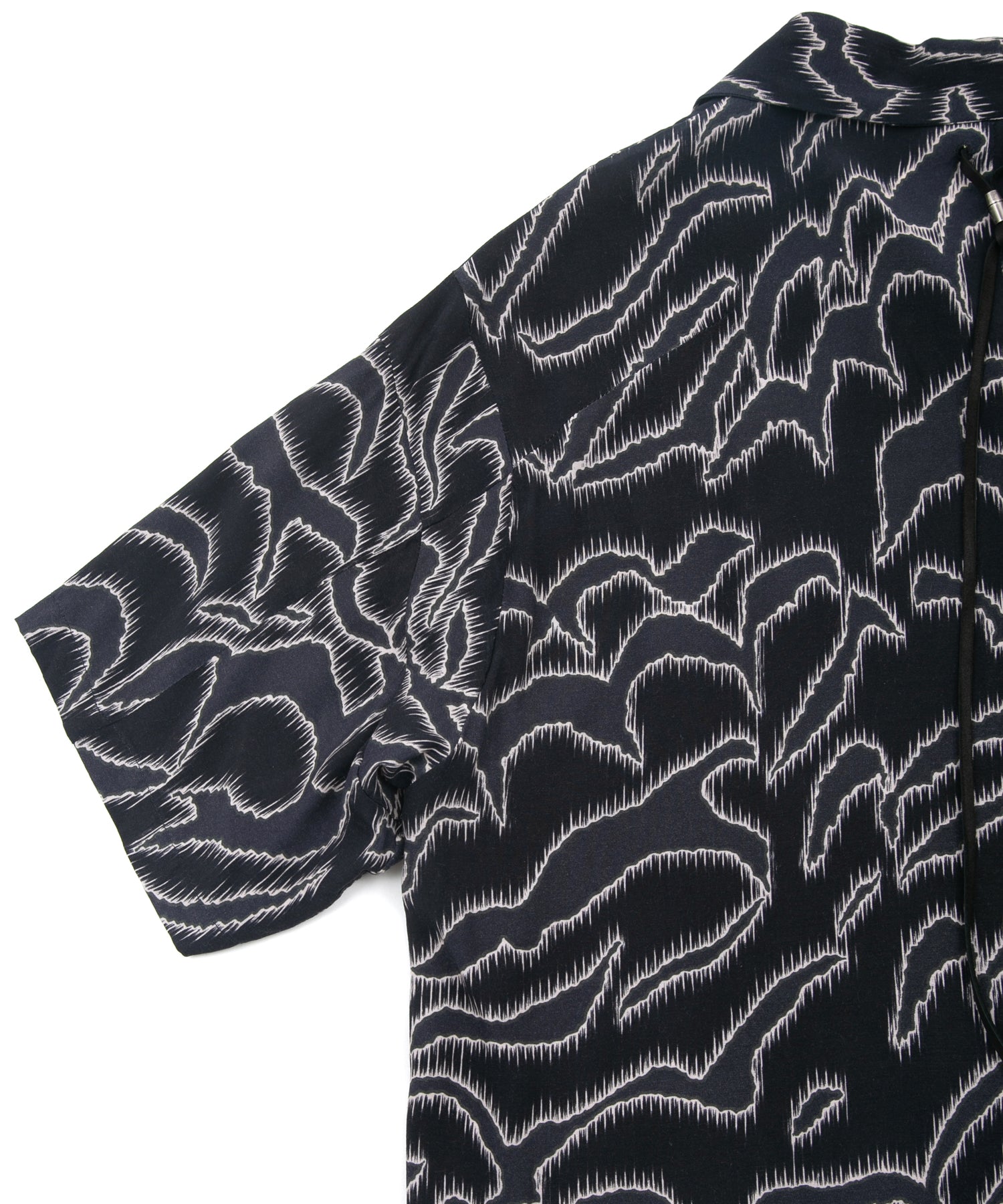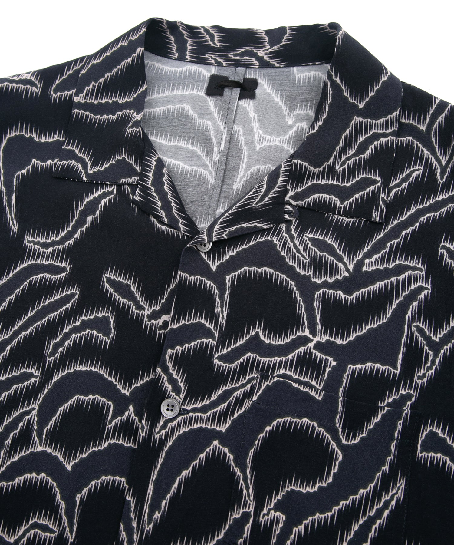 The shoulders have STRUM's standard cut-outs, and the front hem is accented with darts. The breast pocket is cut to match the pattern, emphasizing the visibility and functionality of the pattern on the front. The back is darted to extend from the sleeve sewing.