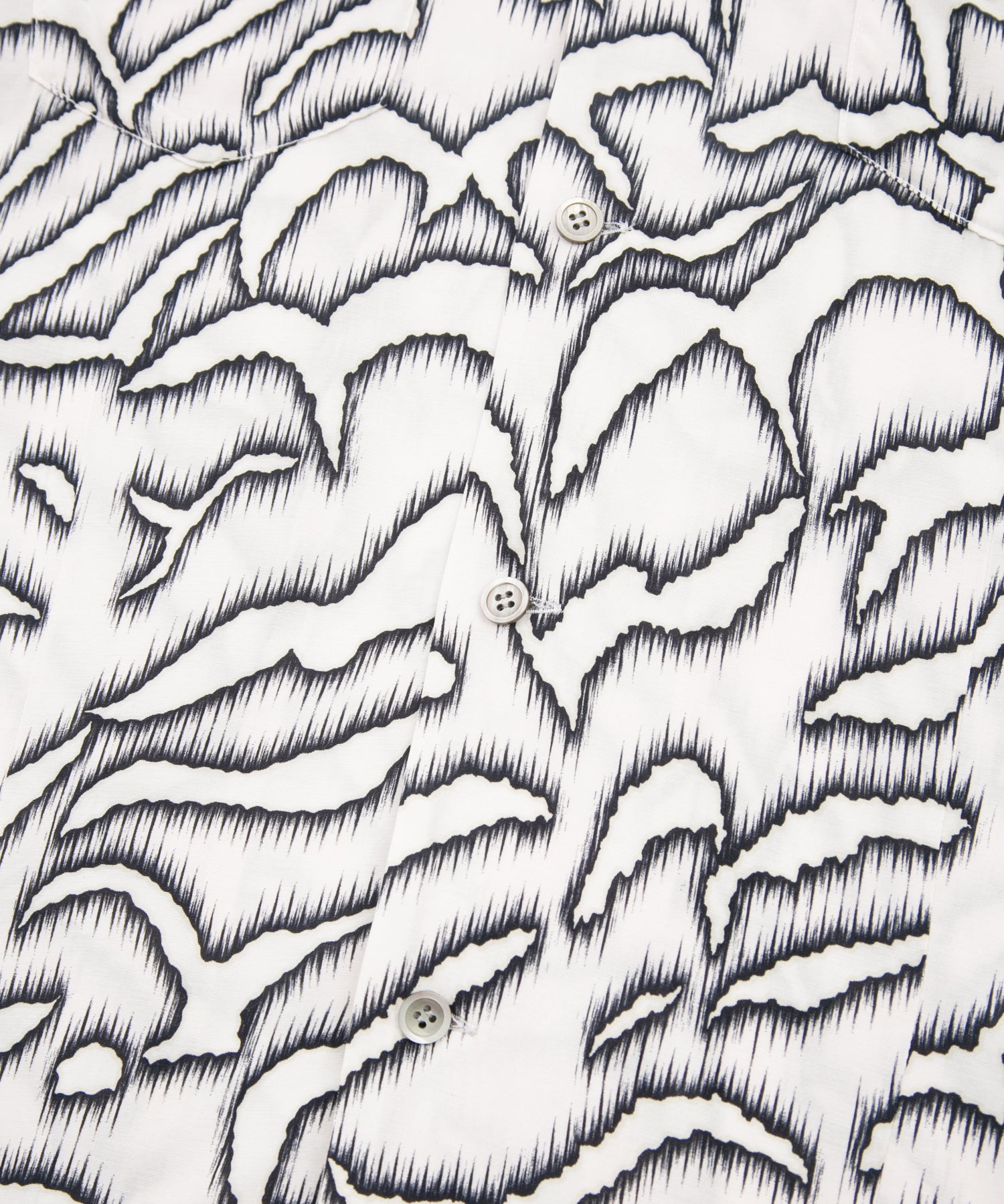 The shoulders have STRUM's standard cut-outs, and the front hem is accented with darts. The breast pocket is cut to match the pattern, emphasizing the visibility and functionality of the pattern on the front.