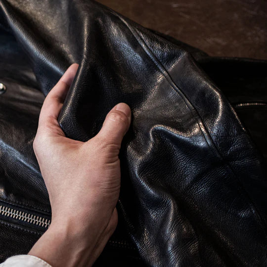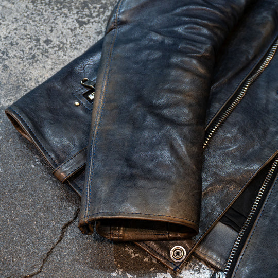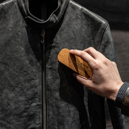 This time, we will explain how to remove stains from STRUM's leather jackets using STRUM's signature product, "Burning dyed".