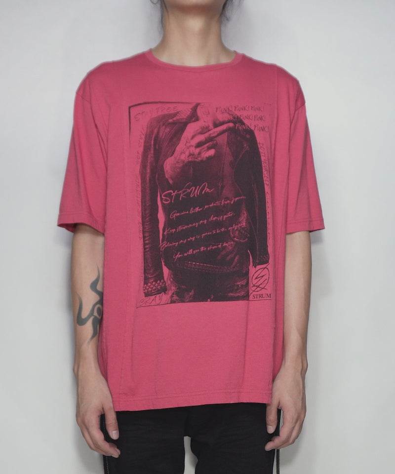 It has a design like a remake Tee, cut and sewn vertically, and is printed with the STRUM Ver. of the graphic collaborated with the PUNK BAND "THE STAR CLUB".