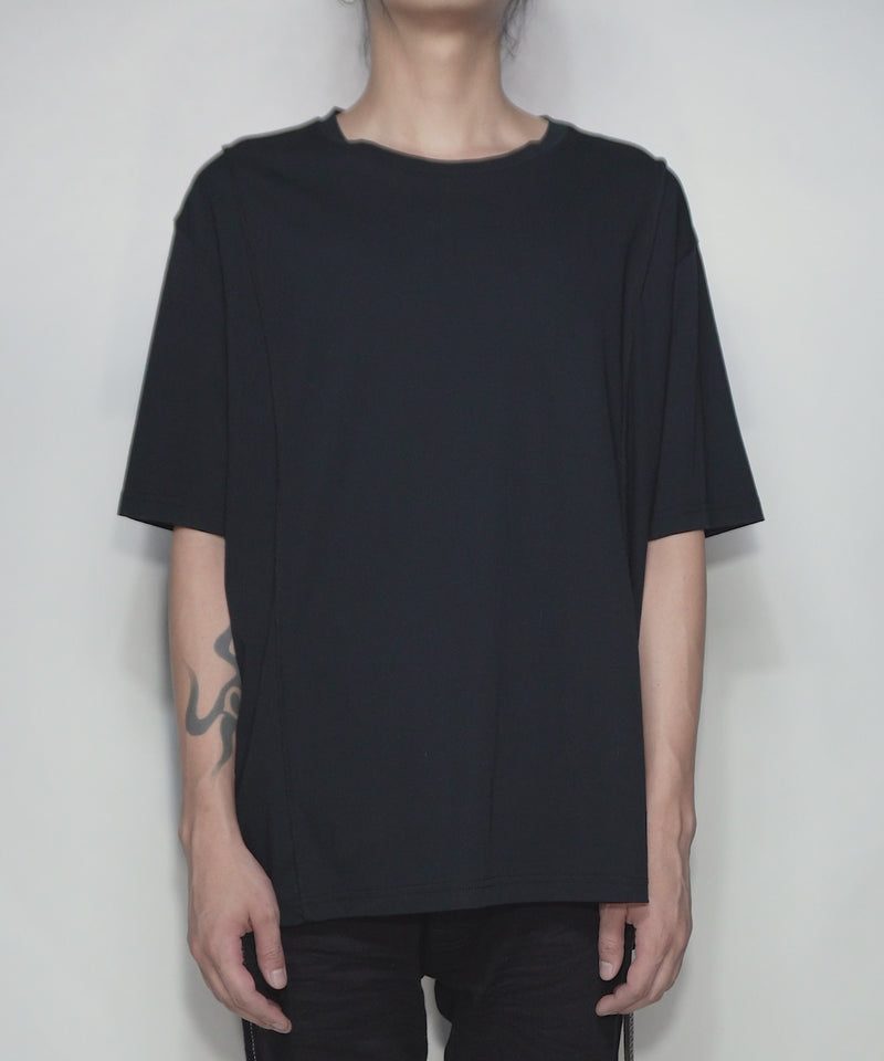 This oversized T-shirt has two lines on the front and one on the center back.