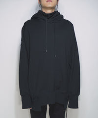 This pullover hoodie has a unique design with a turtleneck-like part inside the hood.