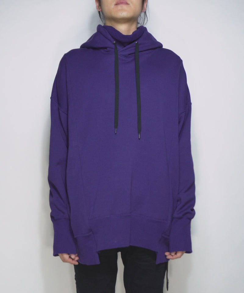 This pullover hoodie has a unique design with a turtleneck-like part inside the hood.