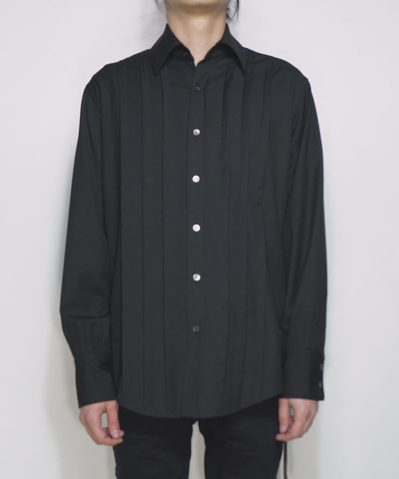 The wide pleats are not too assertive, unlike the image of conventional dress shirts, and the balance of the shirt allows it to be worn both modestly and casually.