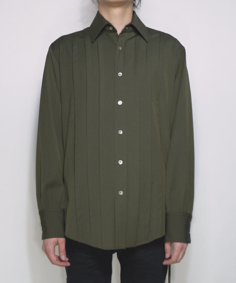 The wide pleats are not too assertive, unlike the image of conventional dress shirts, and the balance of the shirt allows it to be worn both modestly and casually.