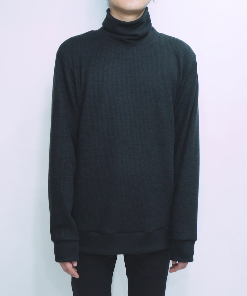 Acrylic Wool Knit Turtleneck Cut&Sew - BLACK