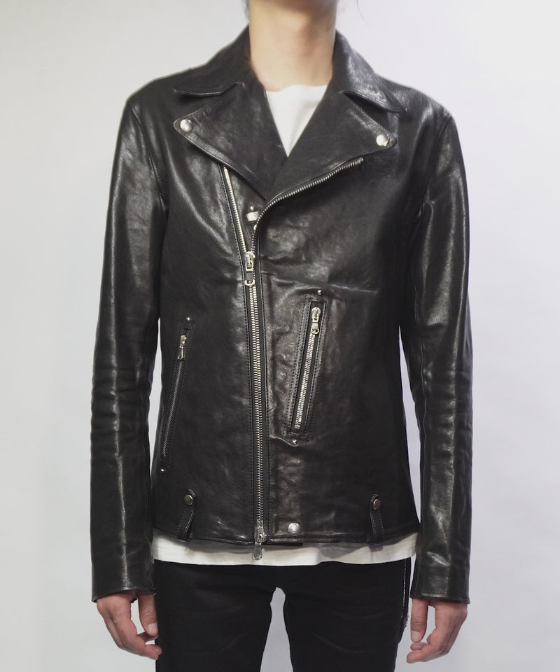 Full tanning pit-tanned shrink-wrapped horsehide HI-FLYER double riders jacket - BLACK