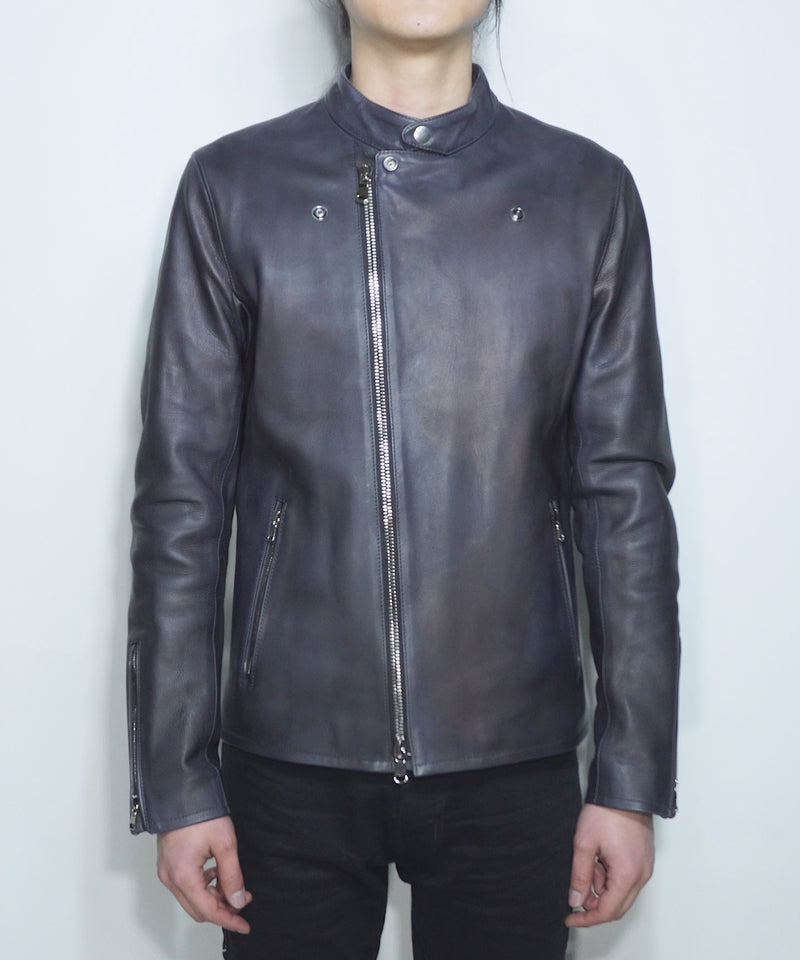Hybrid Vegetable Tanned Calfskin Garment Burning Dyed ELEVEN Semi Double Riders - GRAPHITE GRAY