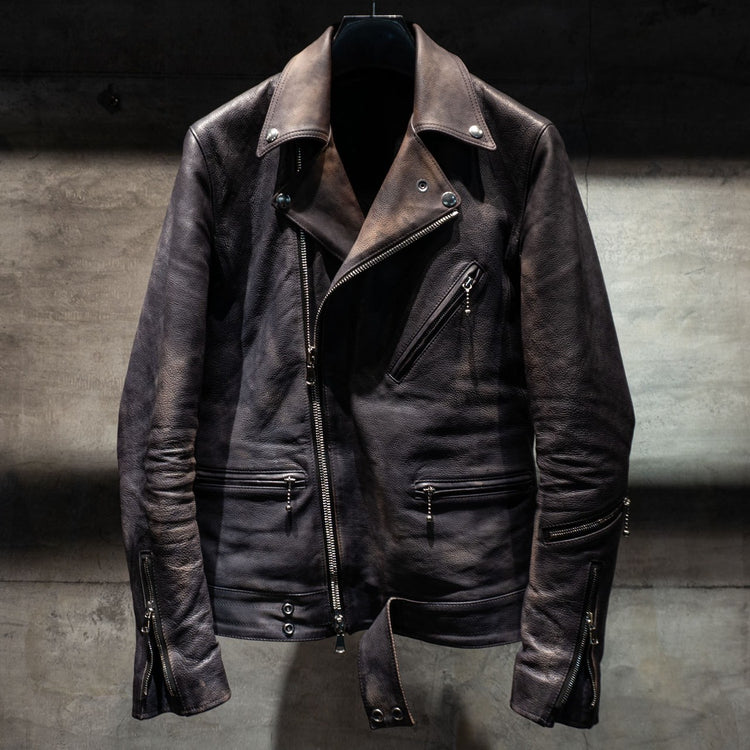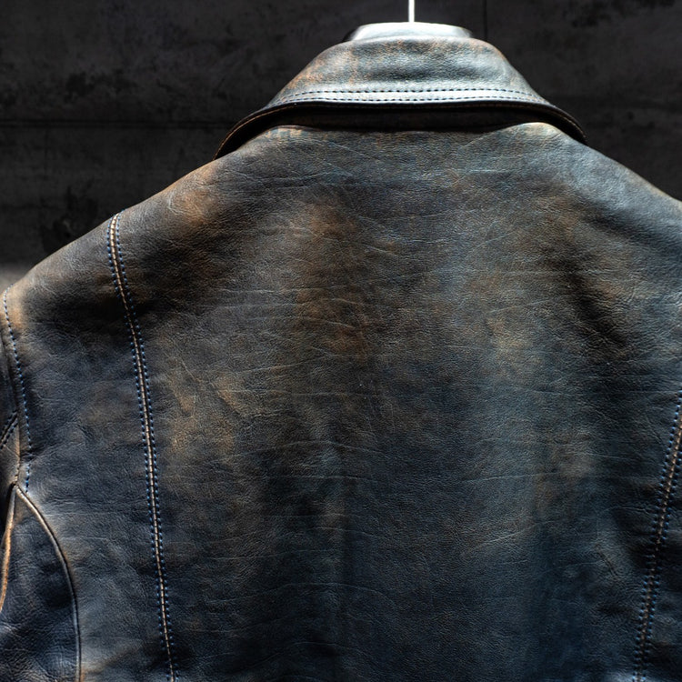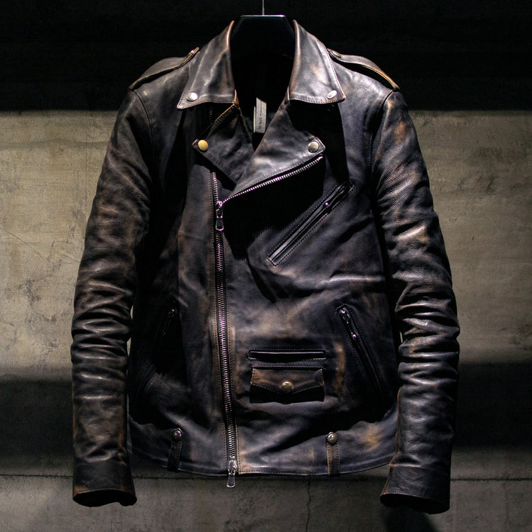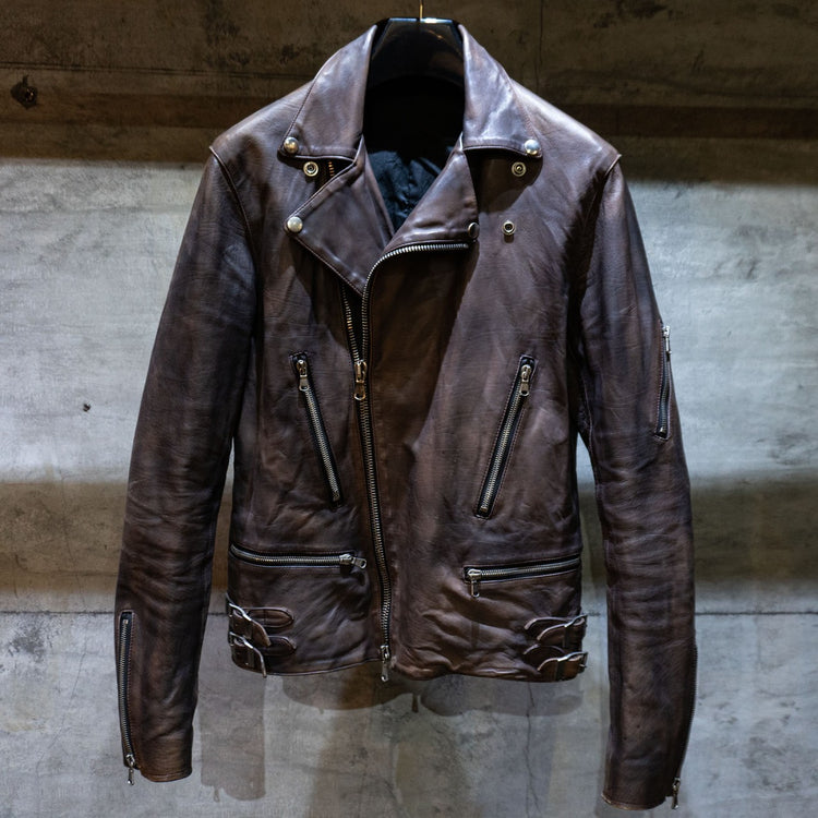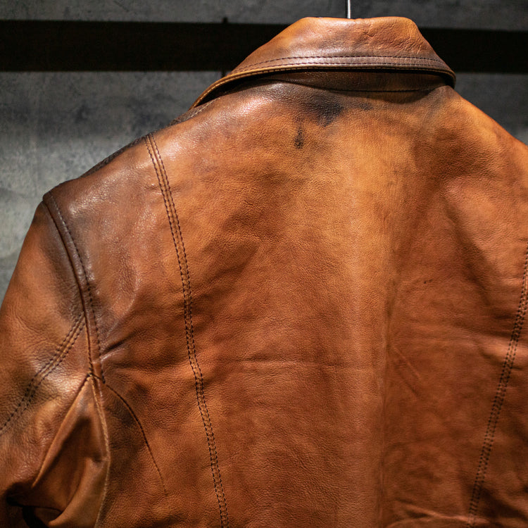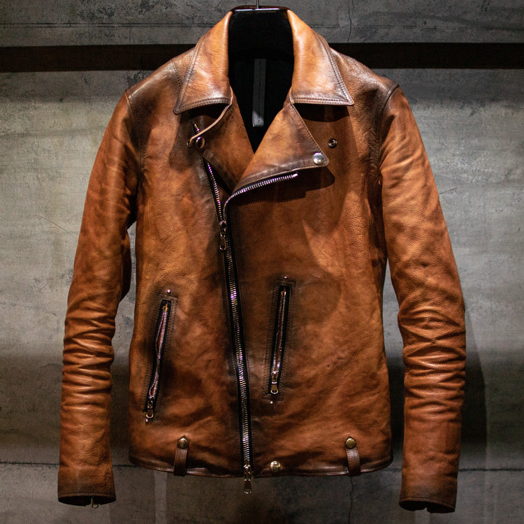 そこでBurning Dyedや経年変化、何より黒以外の色の革ジャンがあることに驚きました。