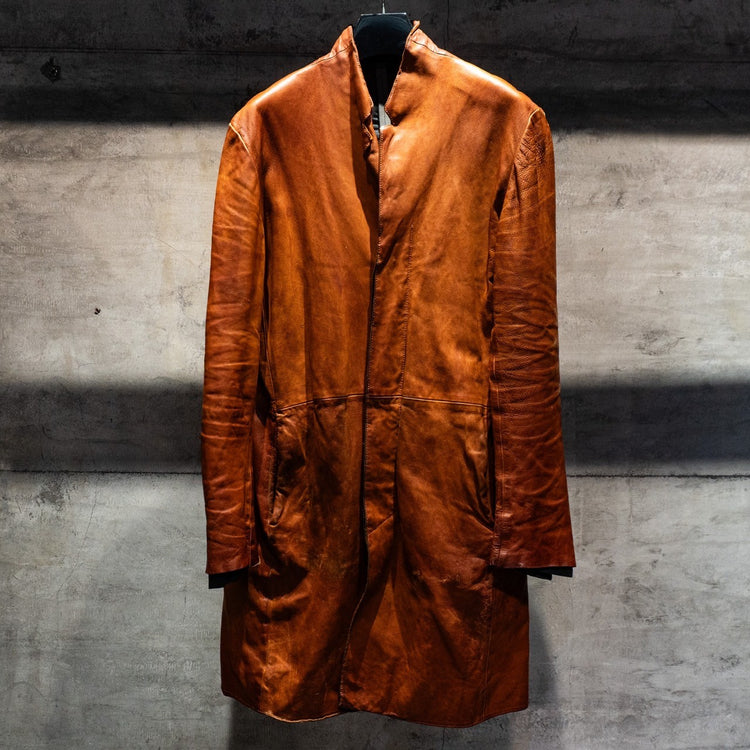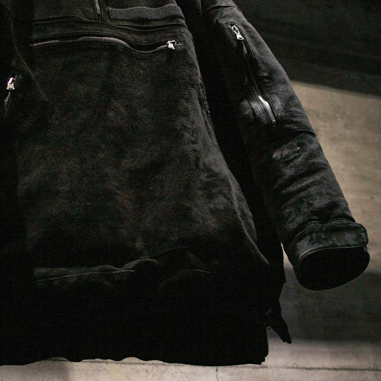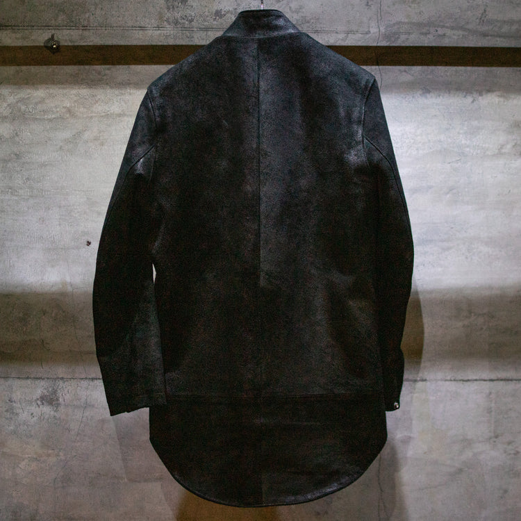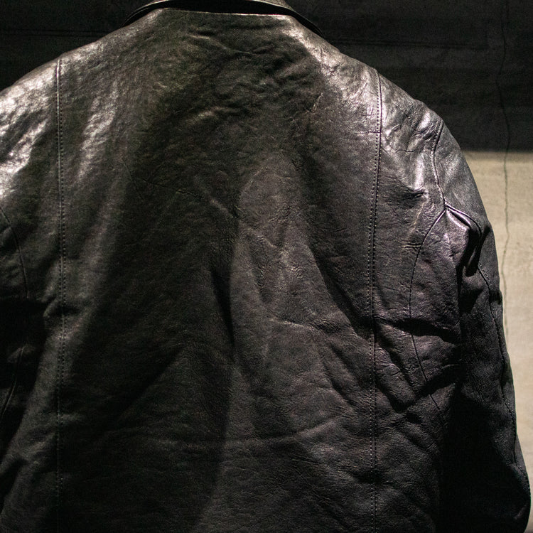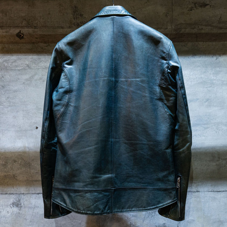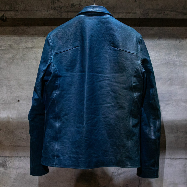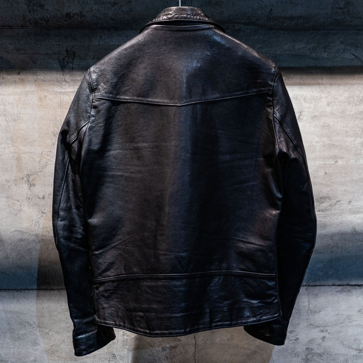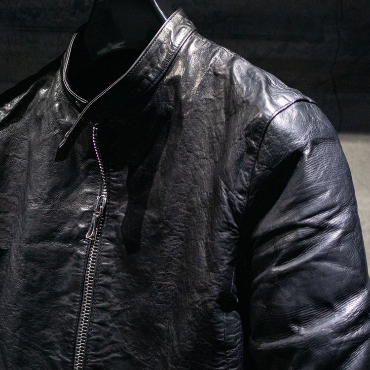 STRUMのレザーは食用の副産物の皮から作られ、人間が生きるために命を頂いた動物たちの皮も無駄にせず、動物への感謝も込めて一点一点丹精込めて作る、という理念が現れたかのような色合いになり、全てを包括する母なる地球に対する感謝を再認識させてくれた革ジャン。