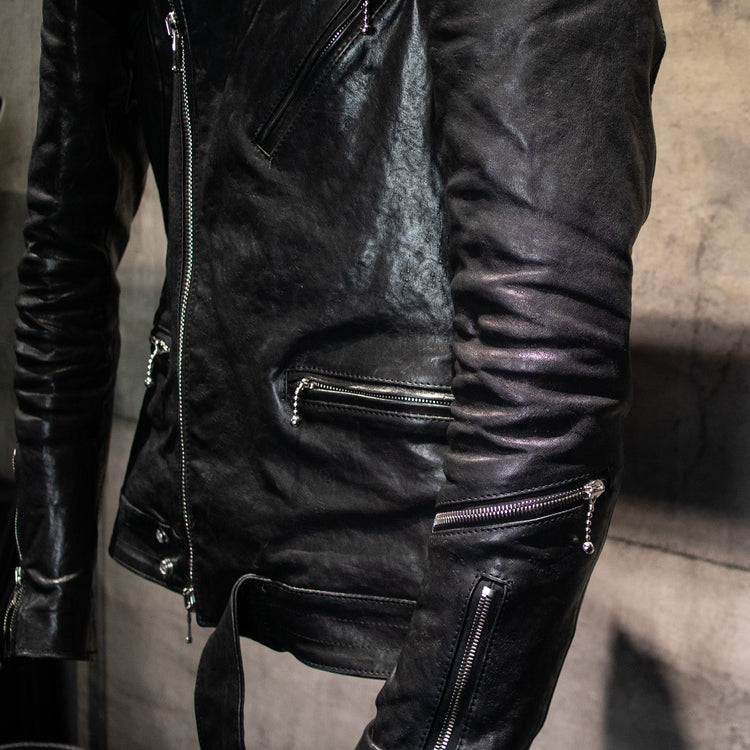 ライダースと言えばゴリゴリなバイク乗りのイメージを持っていましたが、RAVENを手にしてからはイメージが変わりました。上品な質感、無駄な装飾を省きながらも主張するセンターのダブルファスナー。これ1枚羽織るだけで気分も上がる、最高の相棒です。購入から6年。色褪せるどころか、更に愛着が湧いています。