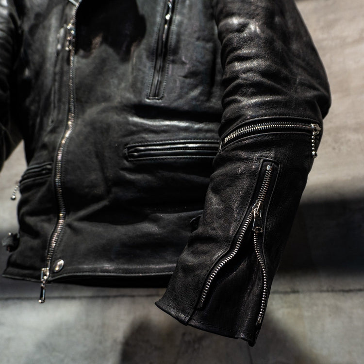 和生さんにオーダーして初めて購入したSTRUMのライダース。若い頃に色々なライダースを購入したが初めて納得出来るライダースを手に入れたと満足をした気持ちは今でも衝撃的で忘れられない。 このライダースにあの時に巡り会わなければ。。きっと今頃はもう少しお金持ちだったのに。。それだけ虜にしてくれたライダースです。