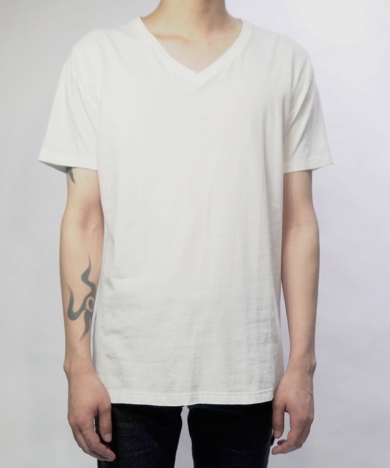 30/-ナチュラルソフト天竺 Vネック Tシャツ(ジャストフィット) - WHITE