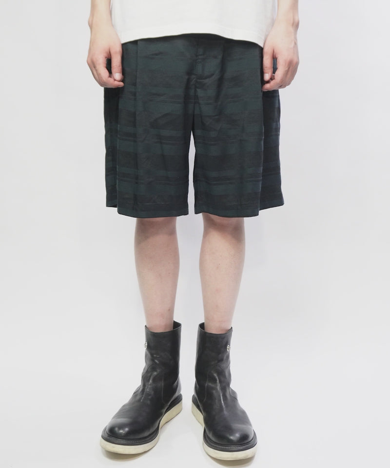 レーヨン コットンラミー ストライプ ショーツ - BLACK