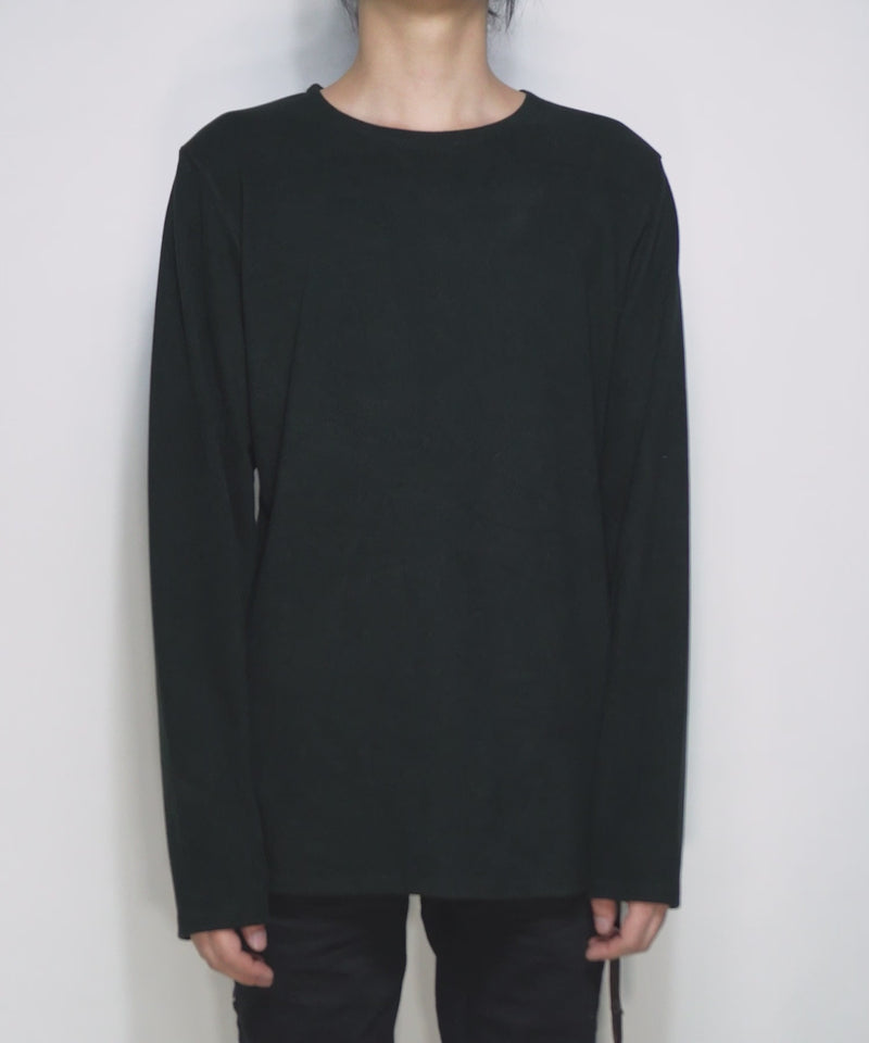 アクリル レーヨン ナイロン ストレッチ ポンチ L/S クルーネック T シャツ - BLACK