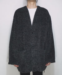 アルパカ ナイロン ドビー シャギー加工 ミドルカーディガン - BLACK