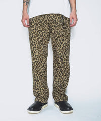 コットン ナイロン豹柄プリント テーパード ワイドパンツ - BROWN