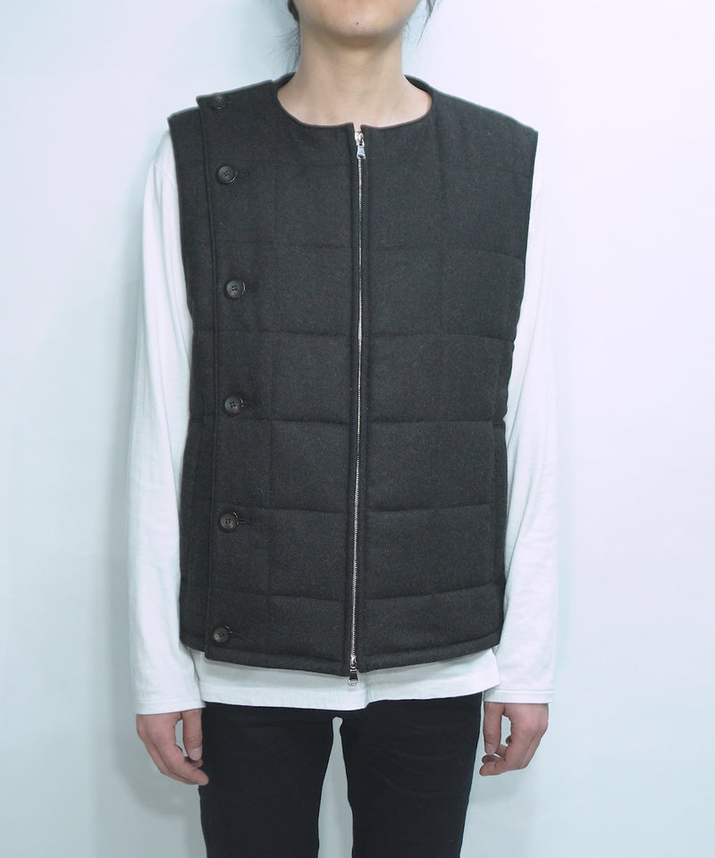 トラックジャケットの要素をSTRUM流に再構築した中綿ベスト。