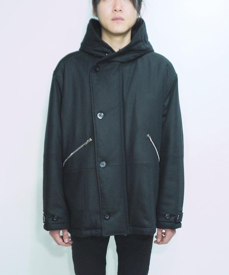 カシミア混 ストレッチ リサイクルウール ツイル 高機能中綿フライトジャケット - BLACK