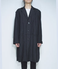ウールリネンギャバジン ワッシャー チェスターロングコート - BLACK