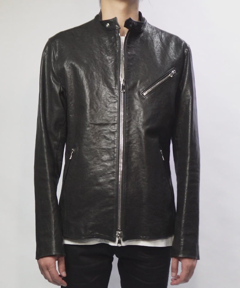 フルタンニン ピット鞣し シュリンク ホースハイド SLATER シングルライダースジャケット - BLACK