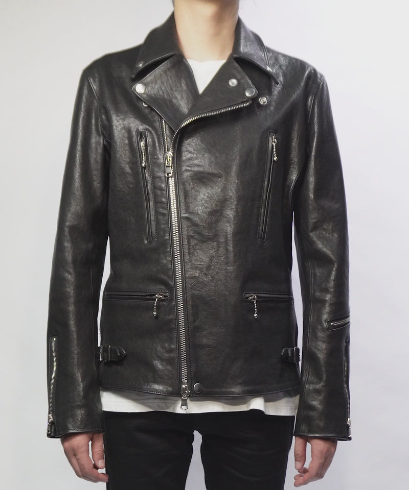 フルタンニン ピット鞣し シュリンク ホースハイド LIST ダブルライダースジャケット - BLACK