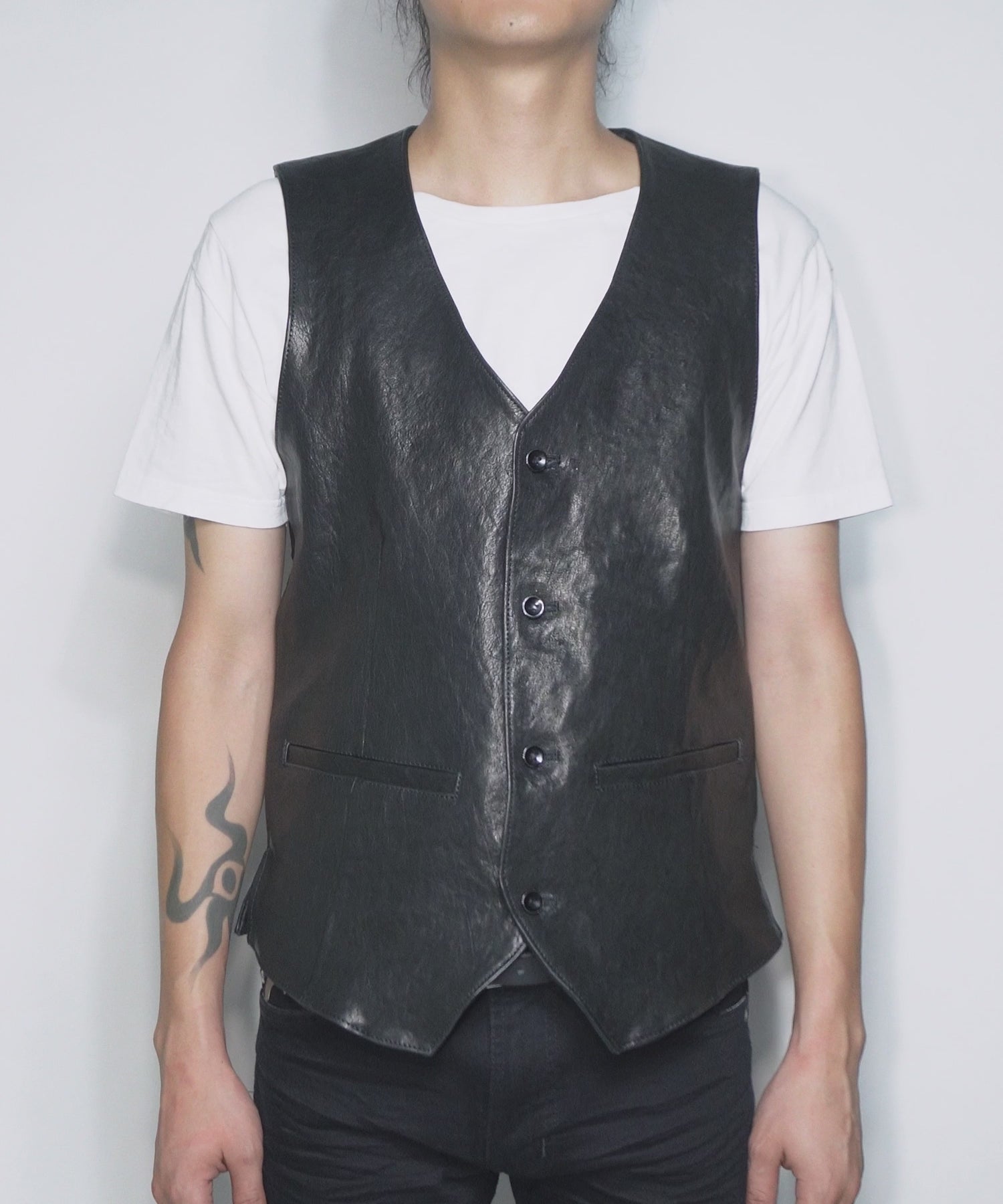 クラシックなジレのシルエットをベースに、贅沢にレザーで仕立てたテーラードベスト ROVER(ローバー)。