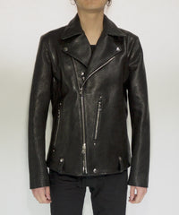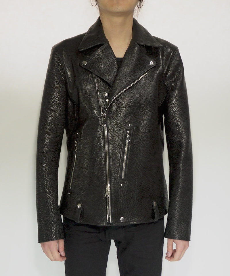 フルタンニン ピット鞣し シュリンク ステアハイド HI-FLYER ダブルライダースジャケット - BLACK