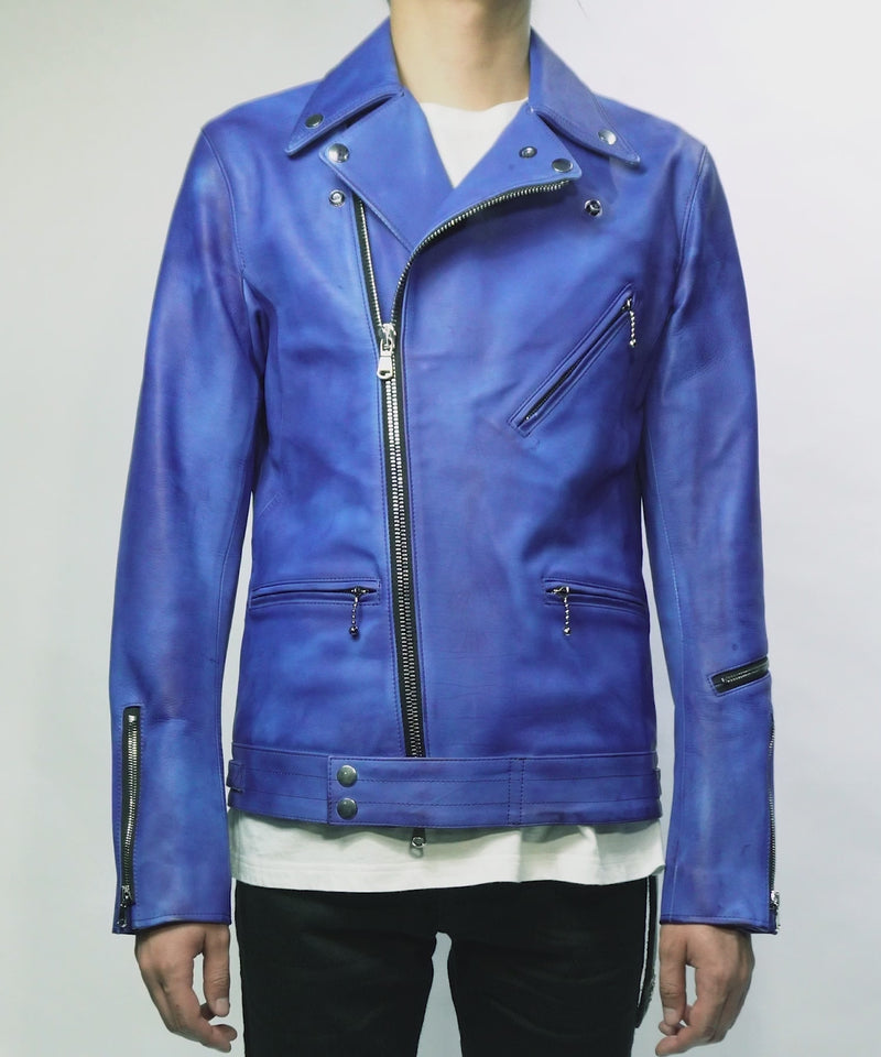 フルタンニン鞣し ジャパンカーフスキン Burning dyed - 燃焼製品染め SPEEDER ダブルライダースジャケット - ROYAL BLUE