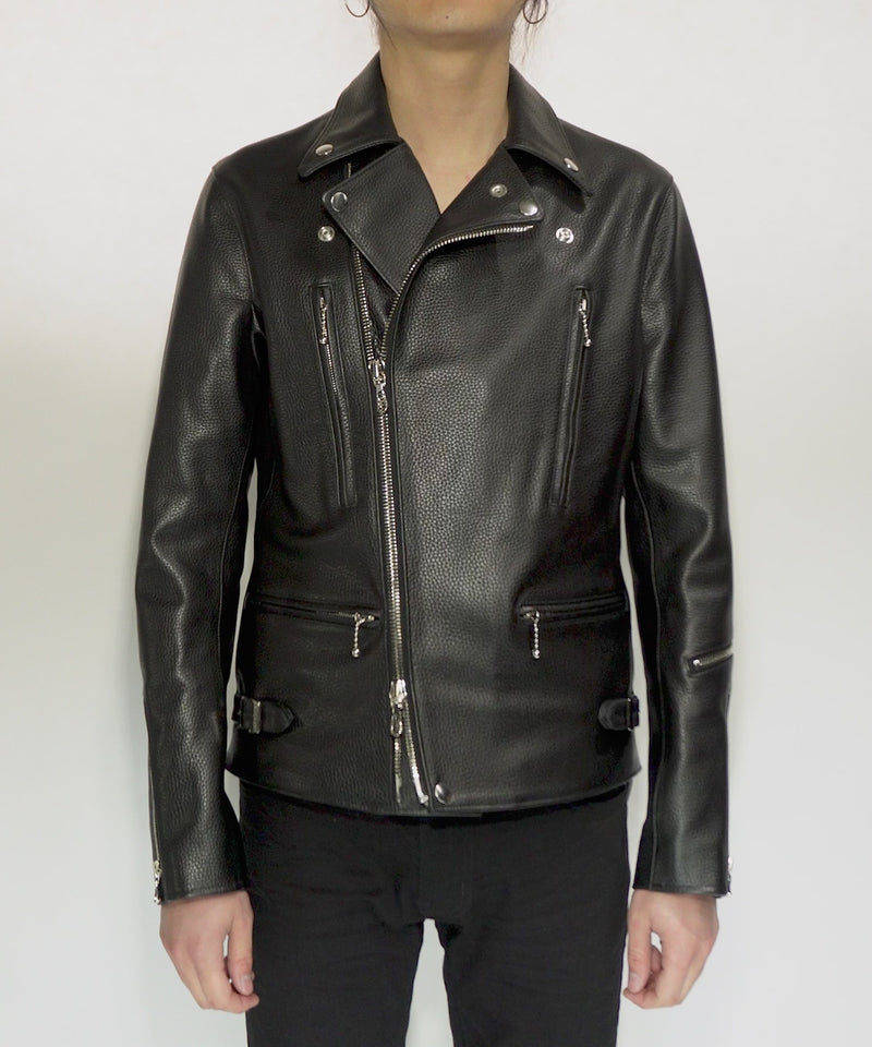 クロム鞣し エンボス シュリンクステア LIST ダブルライダースジャケット - BLACK