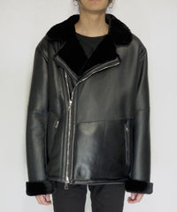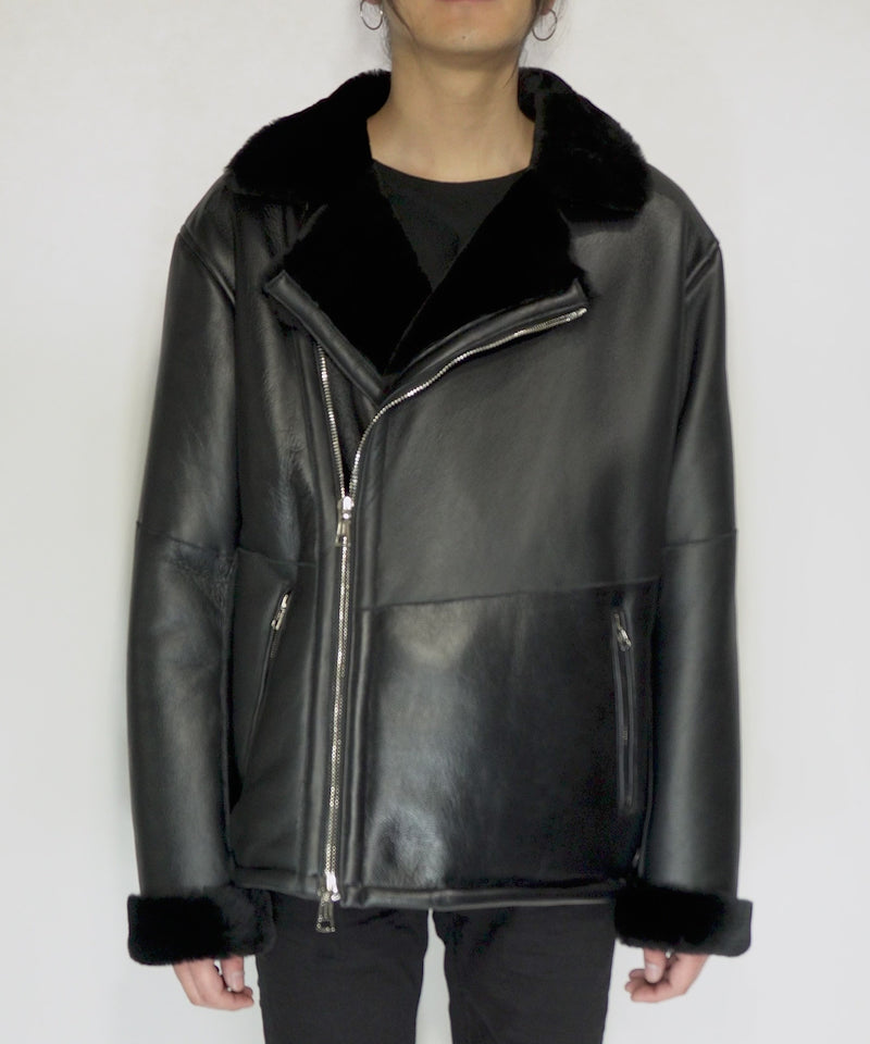 スペイン メリノ ナッパラン仕上げ CHAMBERS B-3 ムートンライダースジャケット - BLACK