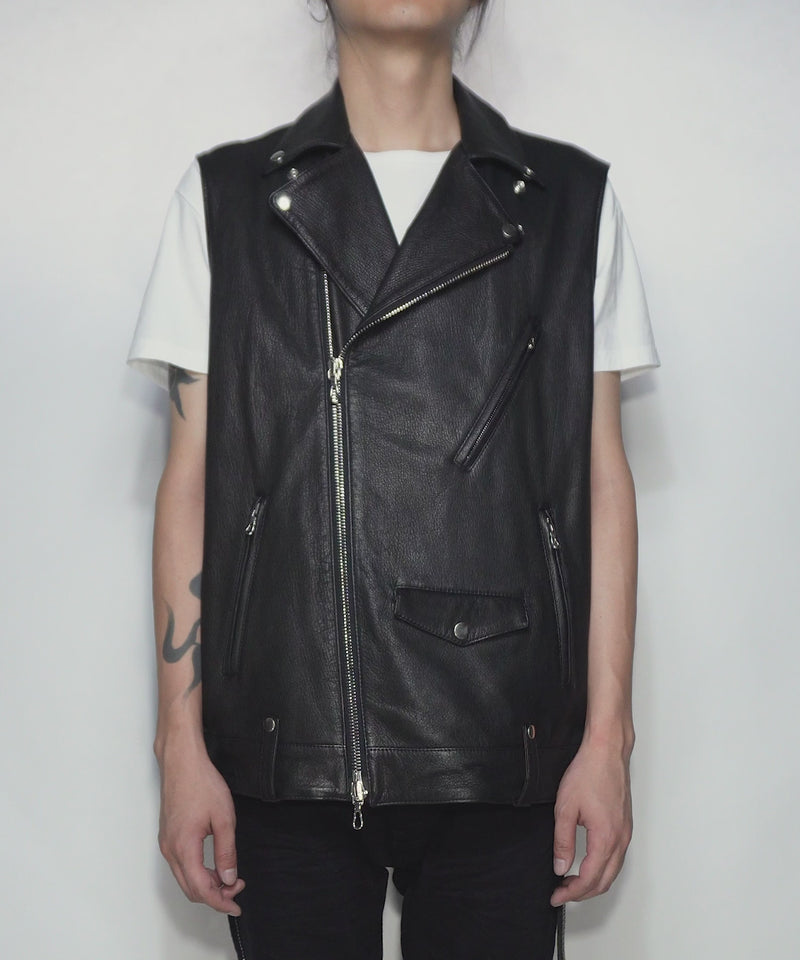 白鞣し × 黒染め ディアスキン RENTON ダブルライダースベスト - BLACK