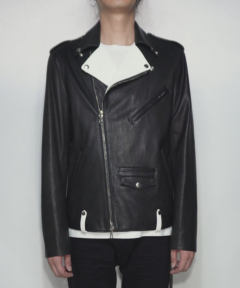 白鞣し × 黒染め ディアスキン 2トーン JOEY ダブルライダースジャケット - BLACK × WHITE