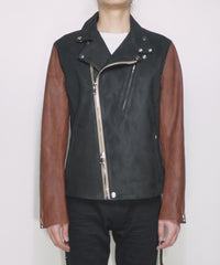 ハイブリッド鞣し イタリアン キャメル ヌバック BIRD MAN ダブルライダースジャケット - BLACK × BROWN