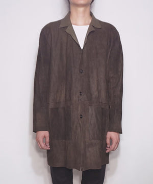 裏地を排し、すべて断ち切りで仕立てた一枚革の構造により、グランジ感漂う存在感のあるミドルコートに仕上げた DEAD MAN(デッドマン)。