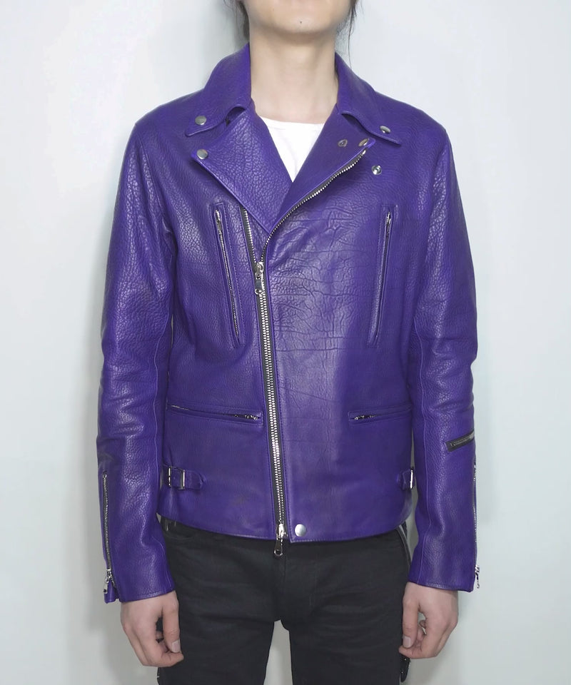 フルベジタブルタンニン鞣し イタリアン シュリンク ダブルショルダー Burning Dyed(燃焼製品染め)LIST ダブルライダースジャケット- CATHEDRAL